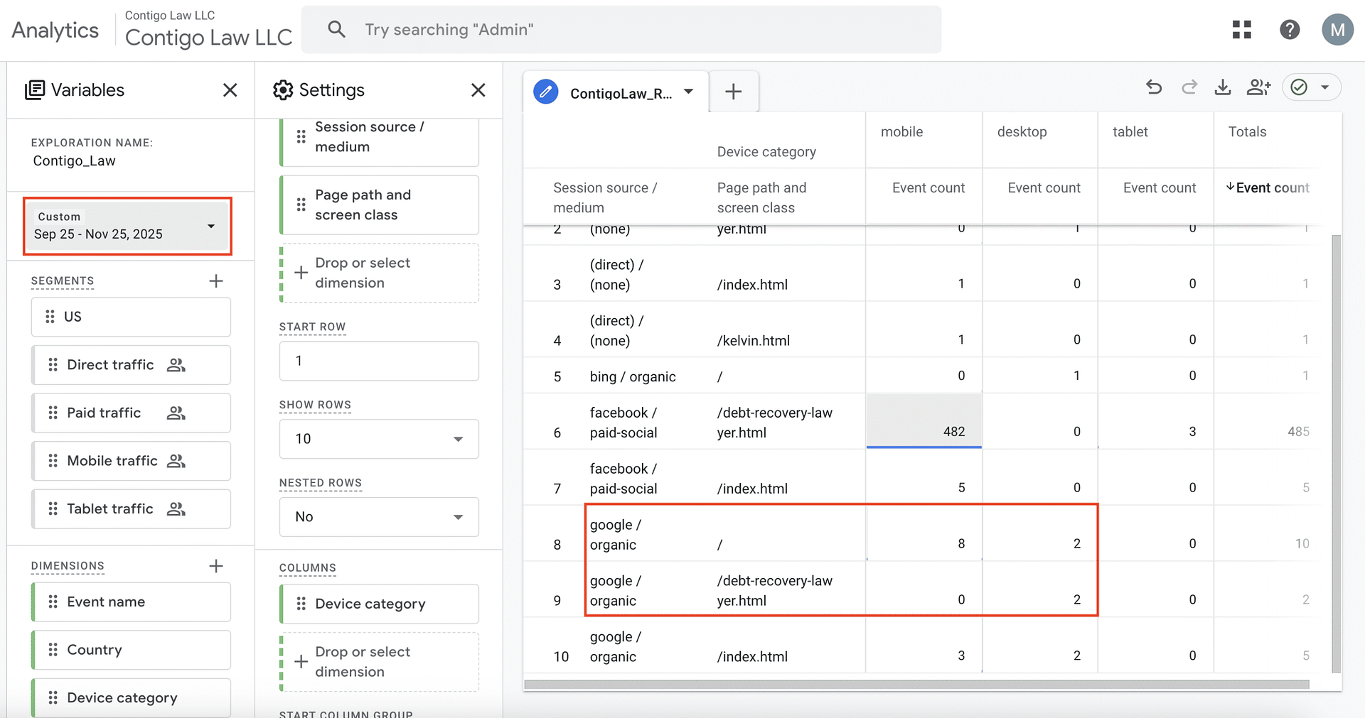 Contigo Law SEO Event Count