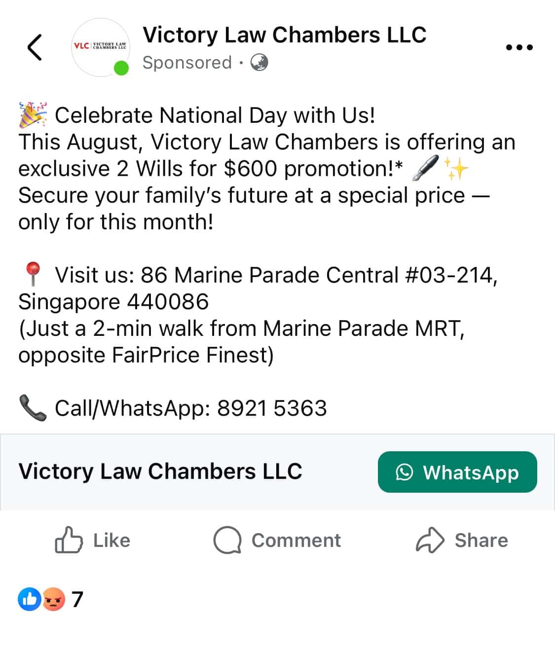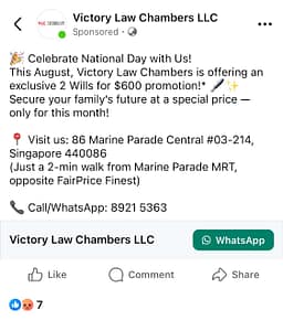 Singapore Law Firm Facebook Ad Example